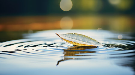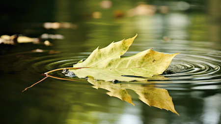 A single leaf floating in a pool of water with ripples, AI