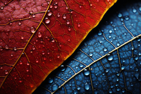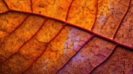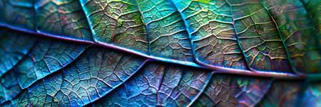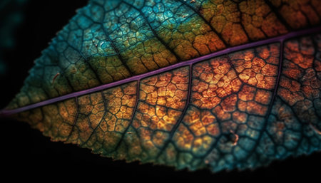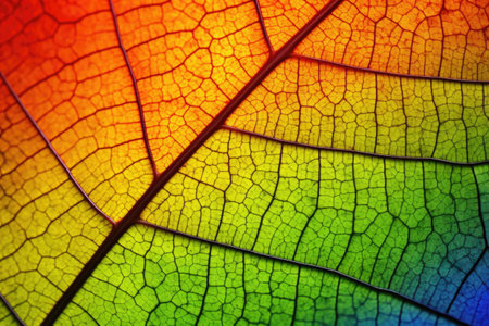 Vibrant multi colored leaf vein pattern in extreme close up macrophotography generated by artificial intelligence