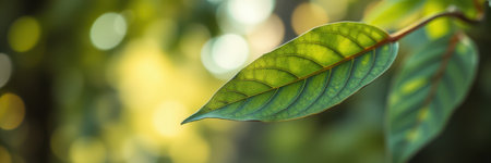 Detailed macro shot of a fresh green leaf, highlighting its smooth texture and vibrant color, embodying vitality.
