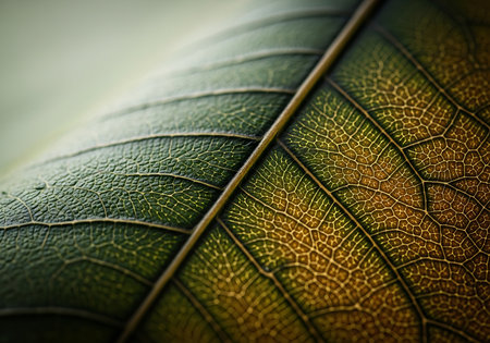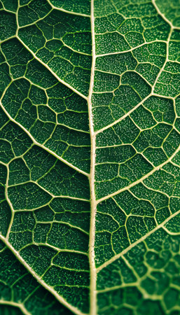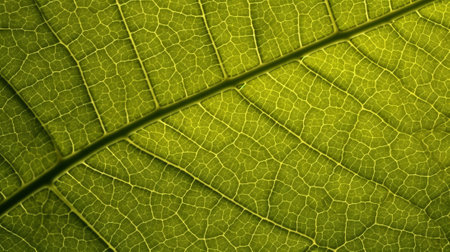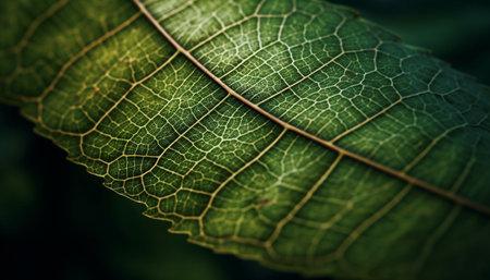 Vibrant leaf vein pattern in macro, showcasing beauty in nature generated by artificial intelligence