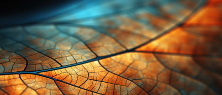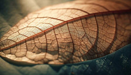 Close-up view of a leaf's intricate vein network, showing its delicate structure and natural beauty. Macro photography at its finest.