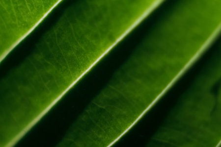 Macro Photography of Exotic Plant Leaf Textures Featuring Intricate Veins and Vibrant Green Details