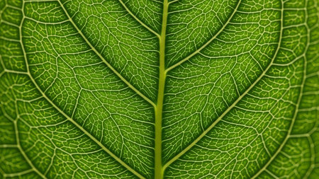 Translucent Green Leaf Veins Macro Shot Displaying Intricate Details and Texture