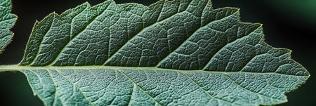 Detailed Green Leaf Revealing Intricate Veins Texture in Nature. A Captivating Deep Focus Macro Shot