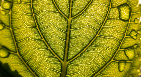 Vibrant green leaf vein pattern in close up generated by artificial intelligence
