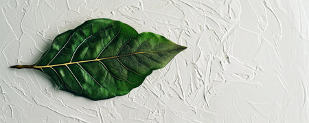 Green leaf on textured white background, nature concept