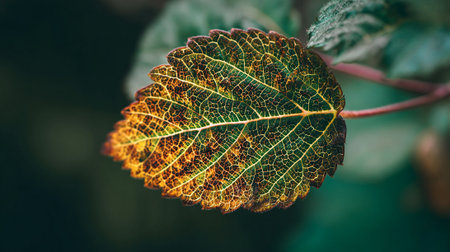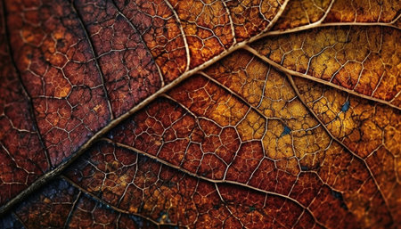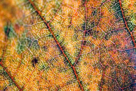 Intricate Leaf Veins Displaying Autumn Colors and Natural Beauty in Sharp Detail