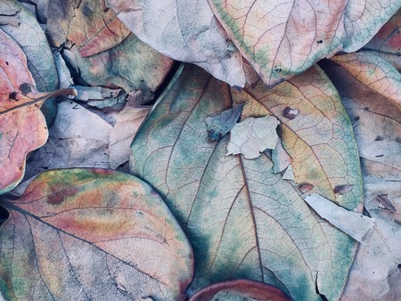 Multicolored autumn leaves as a background, close-up.