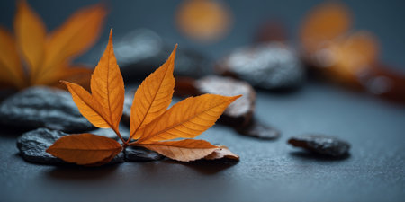 AI Generated. Minimalist Autumn Leaf Design with Negative Space on Blue Slate