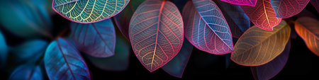 Colorful Leaves with Neon Outlines Creating an Abstract Nature Pattern.