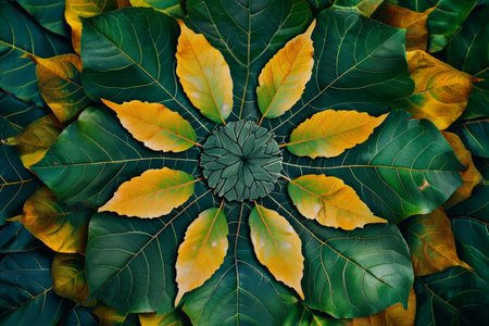 A stunning array of vibrant leaves displayed on a dark background showcases the beauty of nature. Ideal for creative projects, home decor, and artistic inspirations.