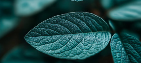 cyanotype. Macro shot of blue leaf texture with veins. Nature background.