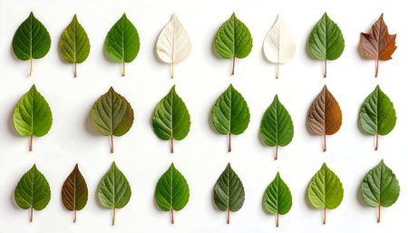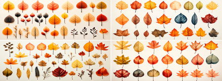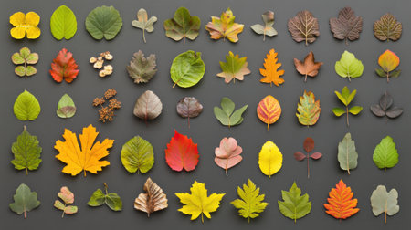 A visually appealing compilation of diverse leaves showcasing an array of colors and textures. This arrangement highlights nature's beauty and organic design.