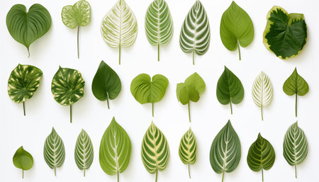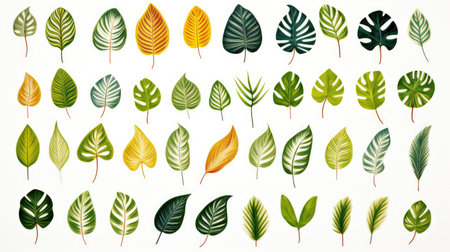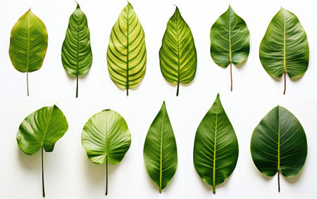 Dazzling Different Tropical Green Leaves Isolated on White Background
