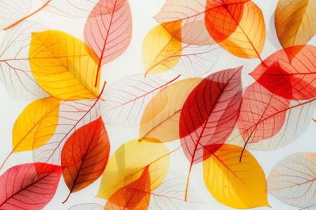 Autumn background of yellow and red transparent leaves.
