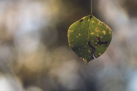 Green leaf on stone background with filter effect retro vintage style and soft focus