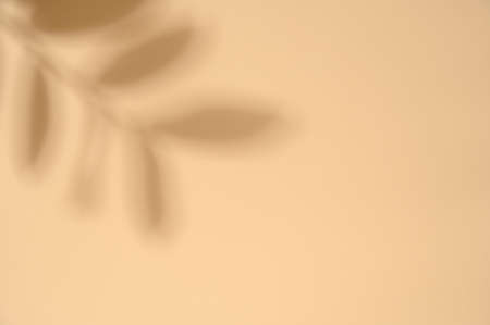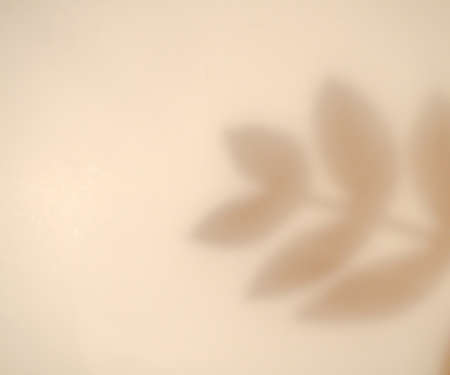 Shadow of leaves on solid beige wall texture background