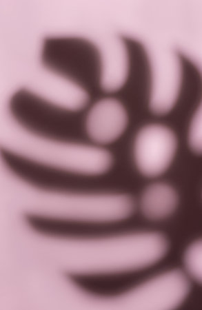 Shadows from monstera leaves on a pink background.