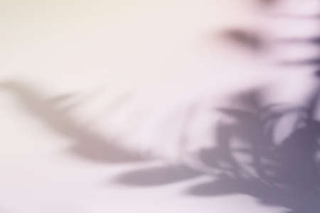 Blurred shadow from leaves plants on the white wall. Minimal abstract background.