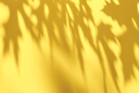Shadow of leaves on yellow concrete wall texture background