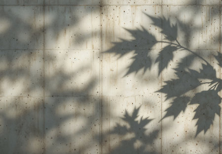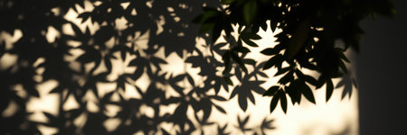 Shadows of leaves create intricate patterns on a soft background during the golden hour