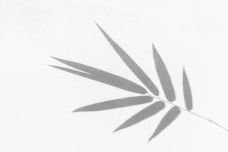 Shadow of leaf on white wall. Abstract background and texture for design.