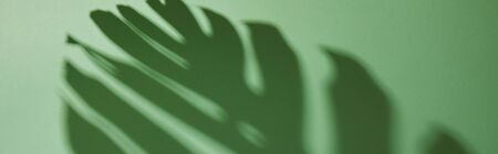 panoramic shot of tropical leaf shadow on green background