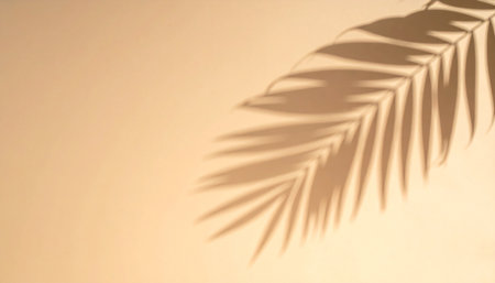 Soft palm leaf shadow on warm beige background creating minimal natural abstract pattern.