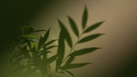 Subtle shadows of green leaves dance on a soft cream background, creating a calming ambiance that evokes feelings of serenity and connection with nature.