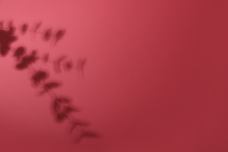 Shadow of eucalyptus leaves on color background