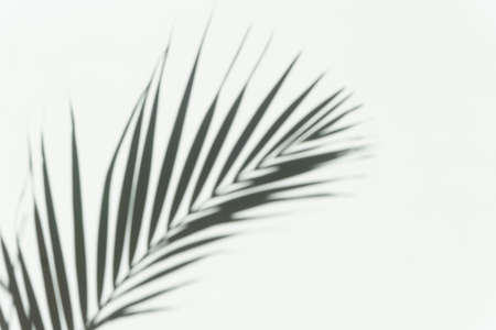 Shadow of palm leaf on white background. Creative drawing of light and shadow for your design
