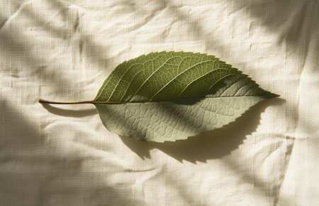 shadow form on a leaf leaf plant natural white paper on linen.
