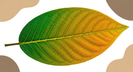A single leaf displays a gradient of colors from lush green to warm golden yellow.