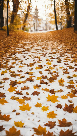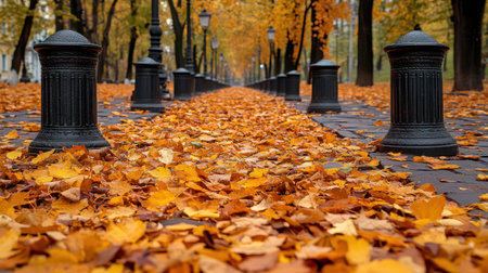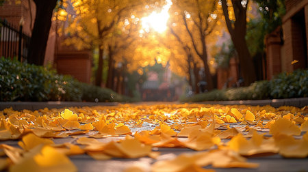 Golden Carpet of Autumn Elegance A Picturesque Scene of Fallen Leaves and Tranquility