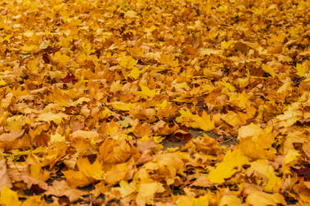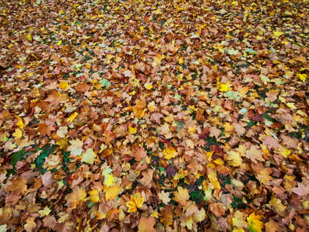 Autumn leaves on the ground in the park. Colorful background