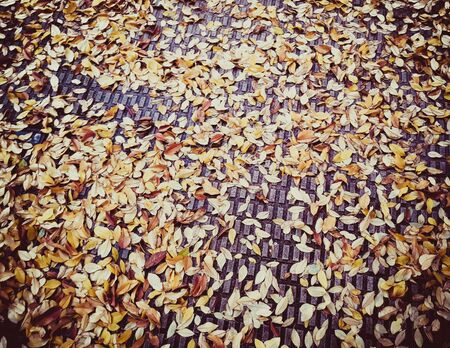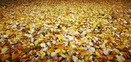 fallen autumn leaves on ground at the morning
