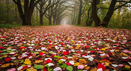 Generative AI : multicolor autumnal fallen leaves