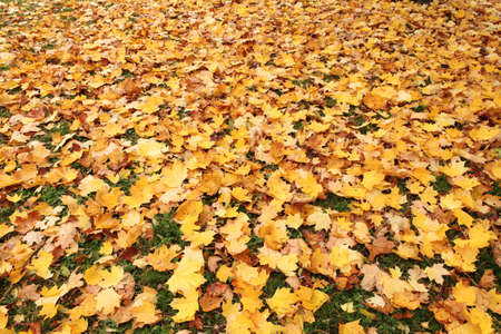Fallen leaves on the ground in the park. Autumn background.