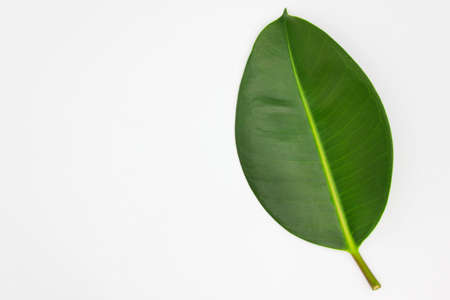 Green leaf on a white background. Flat lay, top view.
