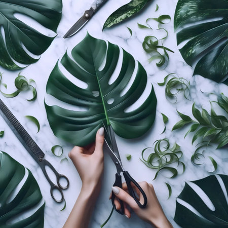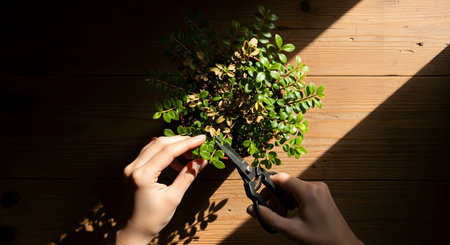 A hands pruning indoor plants, Ai generated image