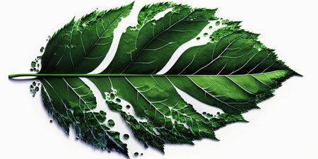 AI Generated. A close up of a green leaf with a brown tip