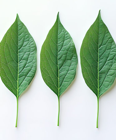 A detailed macro shot captures the natural beauty of a single green leaf. Its prominent veins and textured surface are highlighted, offering a close look at botanical details and organic patterns.