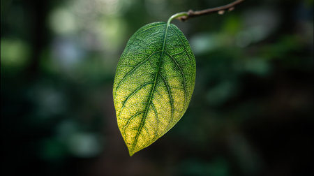 Explore the beauty of nature with this close-up photograph of a vibrant leaf showcasing intricate vein patterns and a stunning green to yellow gradient.