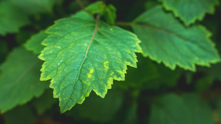 Close up of a green leaf with yellow and green leaves in the garden