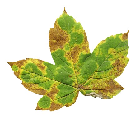 Leaf infectious (leaves disease) with green leaves in bad environment isolated on white background - nature concept.