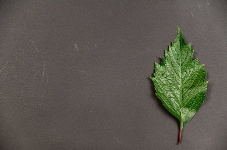 Green leaf on a green background. Minimalistic style. Nature concept.