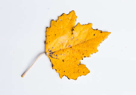 Close-up Photograph of a withering autumnal leaves isolated on white background in high resolution