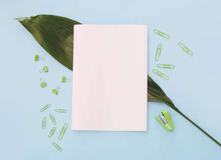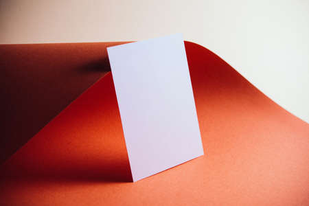 Stylish white blank paper mockup on a colorful background. Document and presentation stationery creator. Selective focus on paper