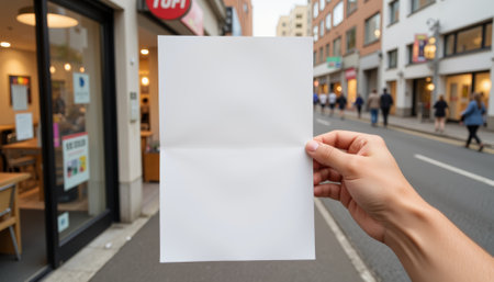 Paper sheet in the hands of a young person. Close-up. Space for lettering and design