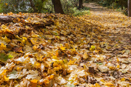 A path strewn with yellow maple leaves. Leningrad region.
